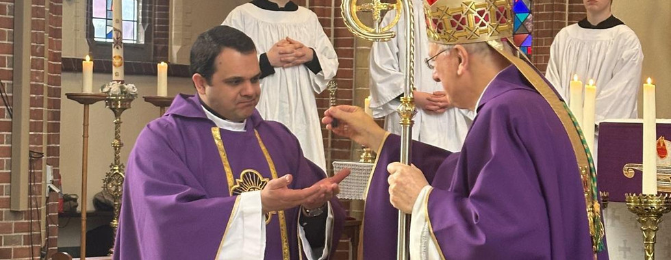 Het was een feestelijke gebeurtenis, waarbij veel parochianen aanwezig waren. De installatie vond plaats aan het begin van de Eucharistieviering. Na een warm welkom door vicevoorzitter van het parochiebestuur, Erna van der Lee, werden de benoemingsbrieven voorgelezen door de secretaris van het bestuur, Trudy Nieuwboer. Vervolgens legden pastoor Álvaro en pastoor Bert hun ambtseed af tegenover de bisschop. Een bijzonder moment was de overhandiging van de sleutels van de kerk en een speciaal vervaardigd pastoorsschopje (herdersschopje) voor onze parochie aan pastoor Álvaro, als symbolen van zijn herderlijke taak binnen onze gemeenschap.